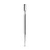 Herramienta de acero inoxidable con doble extremo, diseñada para retirar la cutícula suavemente sin dañar la superficie de la uña.