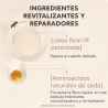 Está enriquecido con Jalea Real-IR patentada, que rellena espacios de queratina, sella cutículas y reduce la porosidad capilar, obteniendo un 100% de reparación en el cabello dañado*.