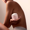 Aplíquela por la mañana y por la noche, o siempre que se note la piel seca. Caliente la crema entre las manos para liberar su textura envolvente. Aplíquela con suavidad en el escote, el pecho y el cuello, con movimientos amplios y ascendentes. Continúe el ritual en las piernas y los brazos. Permita que la piel absorba la crema, envolviéndola con su abrazo nutritivo. Para mejorar la microcirculación, realice movimientos de masaje circulares y ascendentes mientras se aplica el producto en el cuerpo.