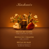 El fondo se despliega con un acorde armonioso de vainilla cremosa y almizcle blanco aterciopelado, que permanece cerca de la piel como un susurro de lujo discreto. Kashmir envuelve a quien lo lleva en una sensación de confort elegante, dejando una estela cálida, íntima y atemporal.