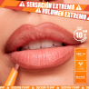 Delinea el labio superior e inferior con la punta inclinada y utiliza el lado de borde plano para dar forma y acentuar las esquinas interiores. CUIDADO: SENSACIÓN EXTREMA Si lo combinas con otros productos voluminizadores, no rellenes los labios por completo.