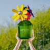 Inspirada en un ramo de flores silvestres, que ahora florece en vibrantes tonos, la botella está coronada por una mezcla de flores amarillas, rosas, moradas y verdes, mientras que los tallos juguetones permanecen, asomándose a través de una botella de un tono más oscuro y adornada con un logotipo dorado.