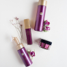 Células madre de Uva negra, de Arándano rojo y Extracto de Granada BIO: Extraídos mediante proceso biotecnológico y ricos en polifenoles, protege la piel del estrés medioambiental, las radiaciones UV e IRA, los agentes contaminantes y la polución. Frena la destrucción del colágeno y previene el deterioro de la dermis. El Extracto de Granada, calma instantáneamente las pieles sensibles y reactivas, aliviando sensaciones de incomodidad.