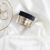 Un lujoso tratamiento basado en las propiedades de las células madre de la Gardenia jasminoides y la Perla negra símbolo de elegancia y sofisticación atemporal, que hacen que la piel renazca desde su interior. Su textura aterciopelada, su fragancia a magnolias y su activo calmante Dermosens envuelven a la piel con una sensación de confort y placer absoluto.