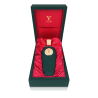 Después de esta sinuosa y sutil apertura, te seduce una explosión de maderas preciosas, algunas muy raras como el pachulí rojo y el cedro del Líbano, equilibradas por el delicadísimo abedul y el haba tonka, unidos en un abrazo creado por el jazmín y el benjuí en el contrapunto de la artemisa.