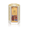 El jarrón de cerámica, adornado con dibujos que recuerdan la simbología de las estrellas, es el complemento perfecto para esta fragancia que invita a la reflexión y al asombro.