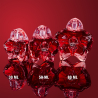 El frasco esculpido en forma de orquídea con su llamativo líquido rojo y un piercing en forma de D lo convierte en una lujosa pieza ideal para el tocador.