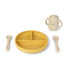 Cubiertos ergonómicos especialmente diseñados para no hacer daño a la encía del bebé en sus primeras comidas.