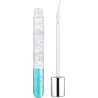 Este aceite de labios brillante en transparente y azul con brillo plateado y aroma a morera crea un brillo luminoso inspirado en el océano.