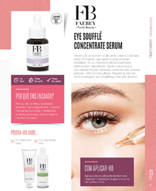 TRATAMIENTO CONTORNO DE OJOS Uso Todas diario las pieles Todas las edades EYE SOUFFLÉ CONCENTRATE SERUM Serum para el contorno de los ojos con cafeína y células madres de orquídea, que ayuda a proporcionar flexibilidad y tiene un importante efecto reafirmante, restaurador y rejuvenecedor. Ayuda a conseguir una mirada fresca y relajada, minimiza las bolsas, aclara y difumina las ojeras. Repara la piel para conseguir un maquillaje de los ojos duradero. ¿POR QUÉ NOS ENCANTA? Por su efecto lifting, suavizante, alisador y descongestionante. Ilumina y rejuvenece la mirada. Y también nos encanta por su textura ligera y de fácil aplicación. PRUÉBALO CON... Pink Shield Facial Cream Pure Detox Micellar Water CÓMO APLICARLO Aplica sobre una piel perfectamente limpia mediante ligeros masajes en la zona del contorno de los ojos. 27