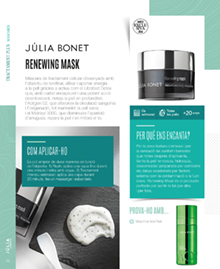 68 SUPRÊME JEUNESSE LE MASQUE Exclusiva mascarilla iluminadora que ofrece un baño revelador de juventud. Con una fórmula de vanguardia, infusionada con piedra de luna, embellece los signos visibles de la edad, mientras relaja y envuelve la piel, proporcionando un momento de absoluto bienestar. Tras su aplicación, mediante un elegante cepillo, la piel luce totalmente nutrida, rellena y luminosa, recuperando su armonía y juventud. Uso Todas semanal las pieles TRATAMIENTO PLUS MASCARILLAS CÓMO APLICARLO Aplica en rostro y cuello con la ayuda del pincel específico. Deja actuar durante 15 minutos y retira el exceso con ayuda de un disco de algodón húmedo. r 45 años ¿POR QUÉ NOS ENCANTA? Por cómo devuelve la juventud y la luminosidad a la piel con cada aplicación. Así como su textura aterciopelada e infinitamente suave y su fragancia con notas divinas y elegantes de magnolia, polvo de arroz y violeta, que brinda a la piel un momento de absoluto bienestar y relajación. PRUÉBALO CON... Suprême Jeunesse S Le Regard L S L u u e J e J r p p r r ê ê o o m m u u e e J J e e u u n n e e s s s s e e